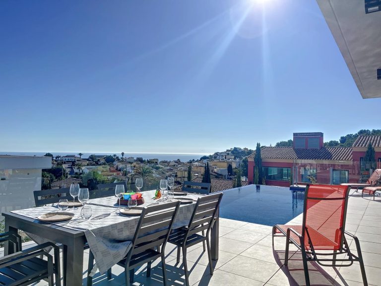 Onlangs gebouwde moderne villa met zeezicht en privé zwembad, gelegen in de woonwijk Lirios in Cumbre del Sol, Benitachell (tussen Jávea en Moraira).